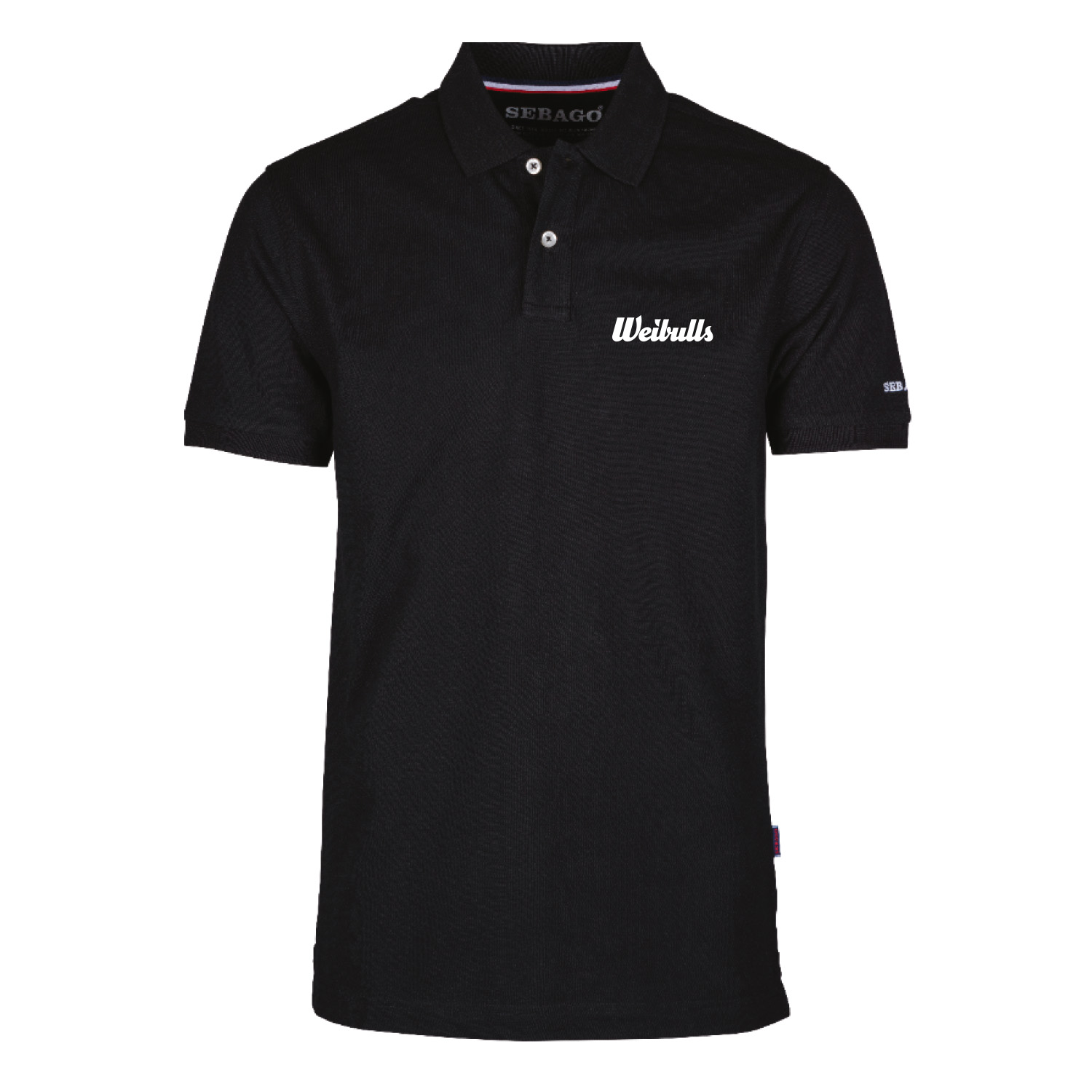 Liten Weibulls logo på vänster bröst, brodyr vit
