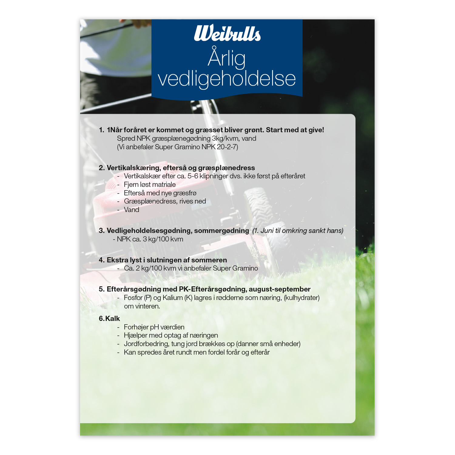 Tipsskylt Gräs A3 årligt underhåll dansk